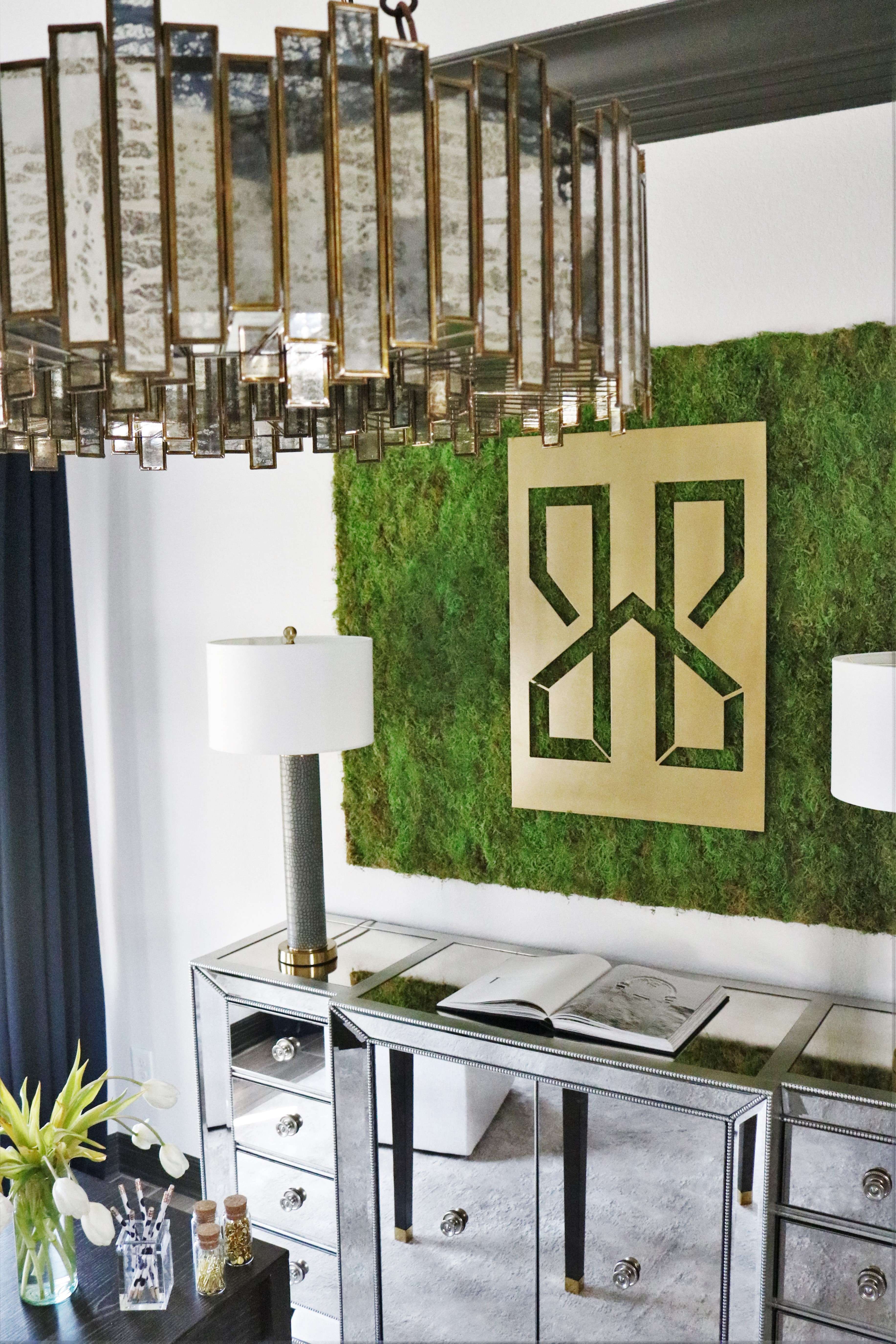 While I was in the early design phase of this room I was simultaneously creating the logo and branding MRI. As soon as my logo was finalized I knew that I wanted it to be on display. What I didn’t know was how. After brainstorming and playing with different ideas I came up with this moss wall idea. I love mixing different textures and materials to create a multi-dimensional space. Incorporating the custom moss wall and the metal MRI logo did just that, instantaneously adding depths of interest and layers. I have a friend who owns a fabrication shop who made this for me, thanks, Ryan! Making your own moss wall can be a super easy DIY project too.