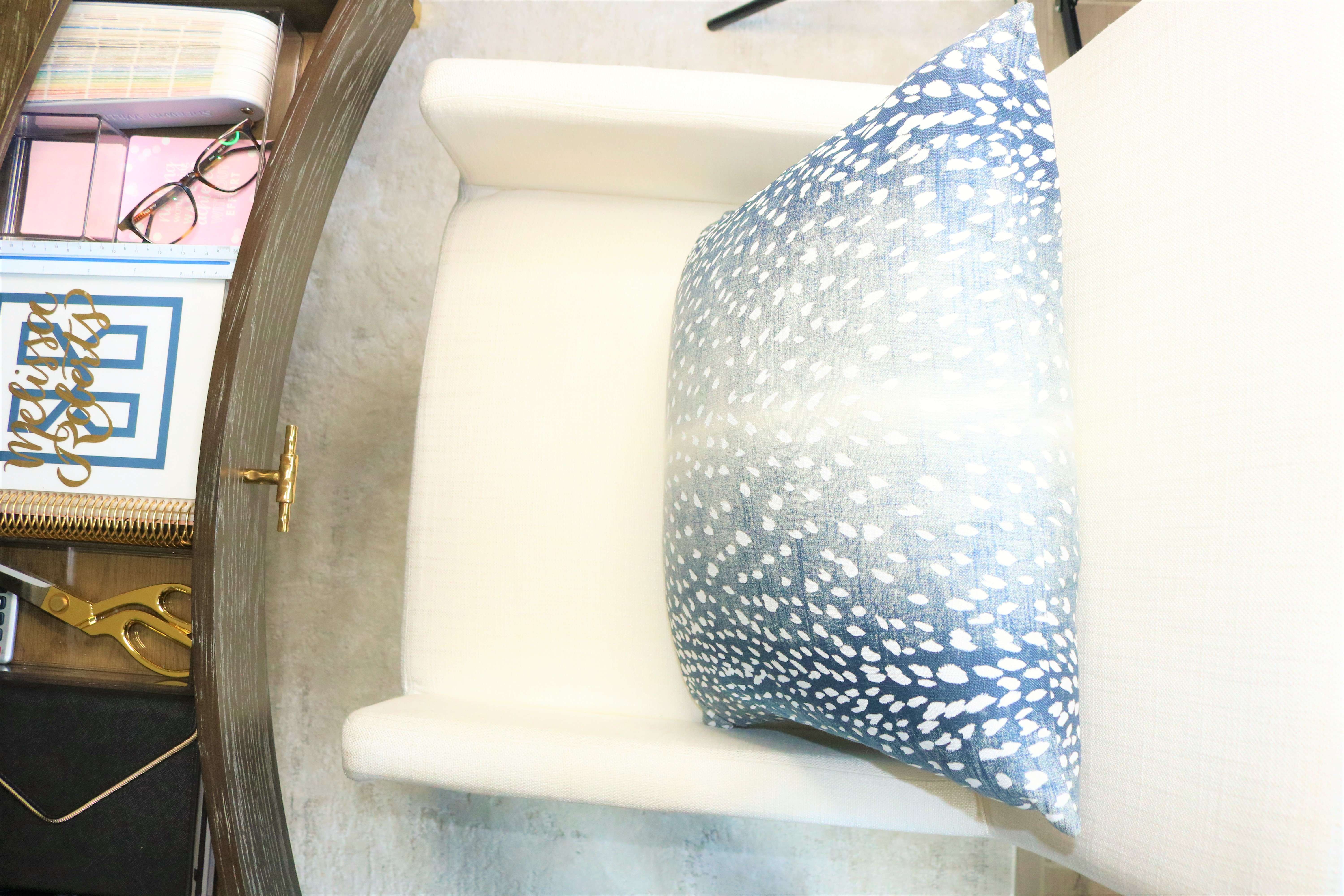 When choosing the furniture for your home office revisit the requirements you listed earlier. If you spend as much time as I do in your office comfort is of most importance. Sitting in an uncomfortable chair while trying to be creative just won’t cut it. I needed a sleek office chair with the perfect non-angled back on casters; this was non-negotiable. Did it take a bit of time to find the ideal chair? Yes! Was it worth the search? ABSOLUTELY! When working in this room before it was styled my feet were so cold and the room just felt empty. That immediately changed when I added a rug. Rugs “ground” the furniture and add another layer of comfort and texture.