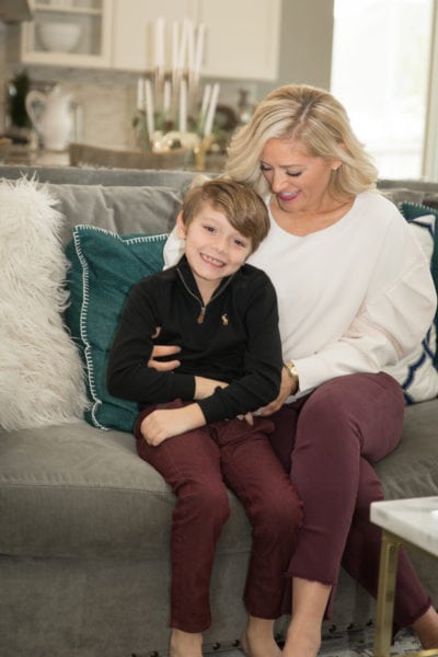 As you can see, I styled it with wine-colored, step-hem jeans. These jeans are SO comfortable and have just the right amount of stretch. These jeans are actually designed to smooth your midsection and legs, winning! While it didn’t give me the thigh gap I long for (as I sit here & think about what I am going to eat for dinner), they did do a great job at making me feel nipped and tucked. True to size.