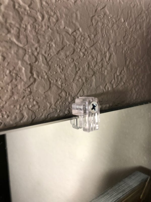 Replace any necessary clips with the ones provided and clean the mirror surface. I simply took one clip off at a time and screwed the new clip into the existing hole from the old clip (this allowed the mirror to stay supported). I probably should mention that I forgot to clean the surface before moving on to step four. Let me say the mirror is still attached and holding strong. I don’t suggest following my lead here.