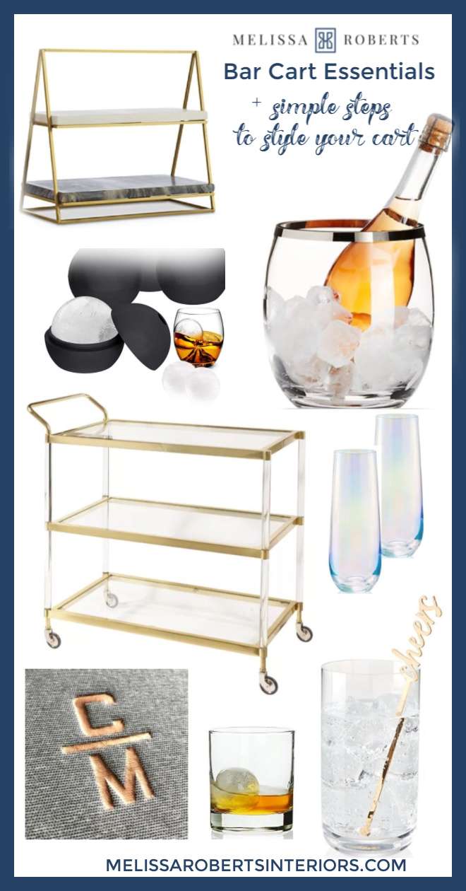 With spring in full effect and summer just around the corner, you will soon be hosting all the neighborhood kids and their parents. The summer heat calls for fruity cocktails and fresh squeezed lemonade. It’s the perfect time to round up some of my favorite bar cart essentials and list out exactly how to style the perfect bar cart.