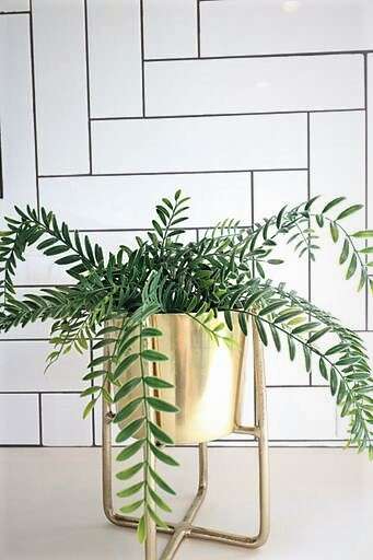You may recognize this brass vase from my own home, be sure to check out it out in this post! The waterfall countertop is what set this fireplace apart. Also, please look at the natural light pouring in!