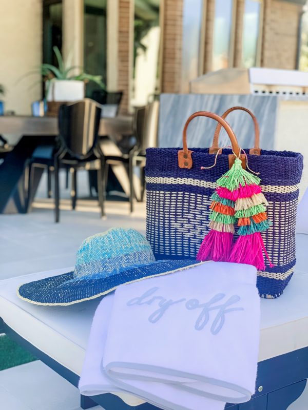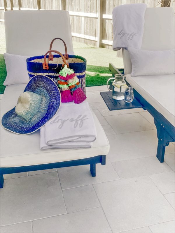 Ask anyone with a pool and they will tell you, there are always towels and more towels laying around everywhere. Have you ever seen such a sleek minimalist towel rack? I, of course, had to get the softest most beautiful Turkish beach towels. The stand will double as a blanket holder once the cooler temps of the Fall set in, Fall are you ever coming??