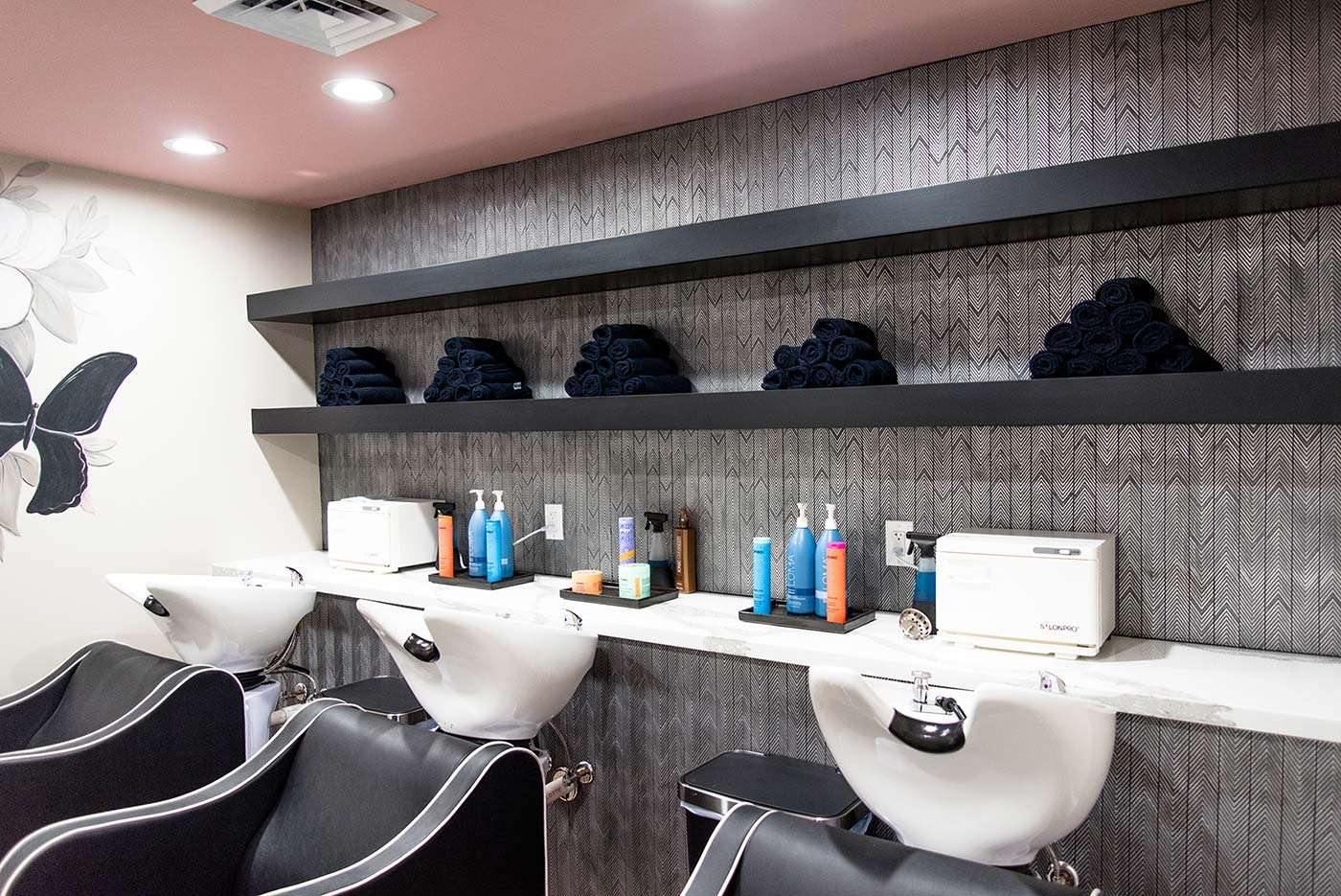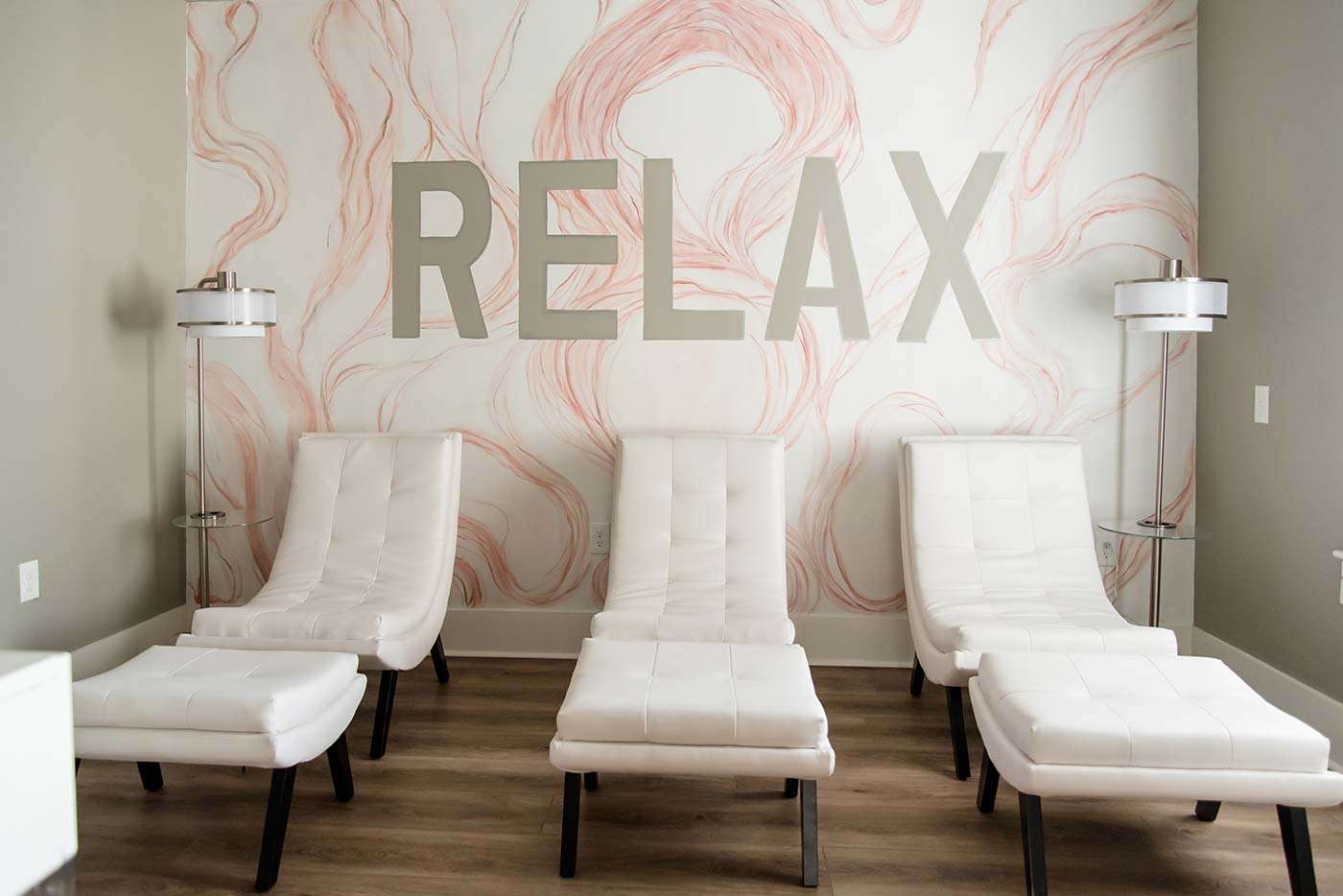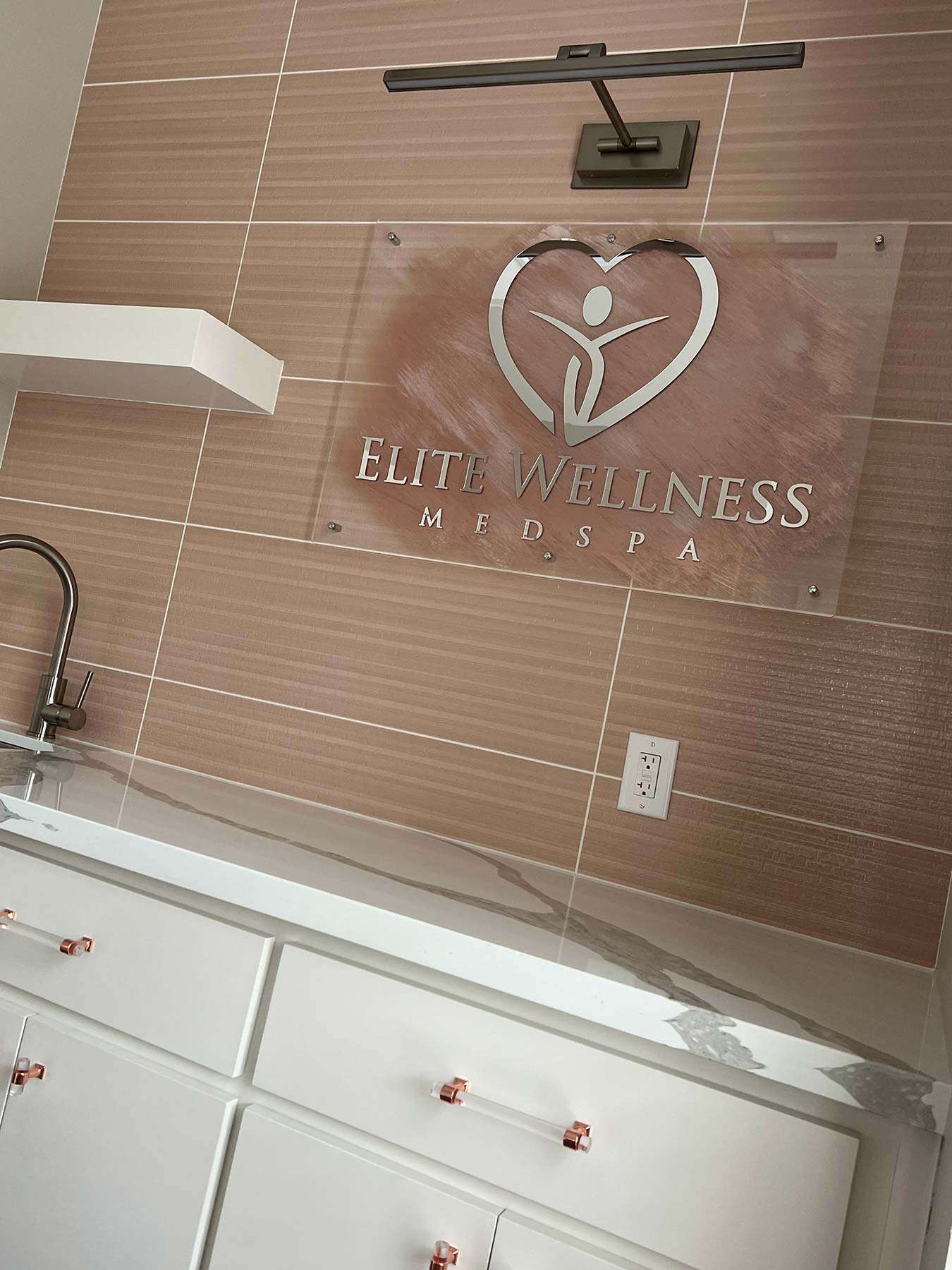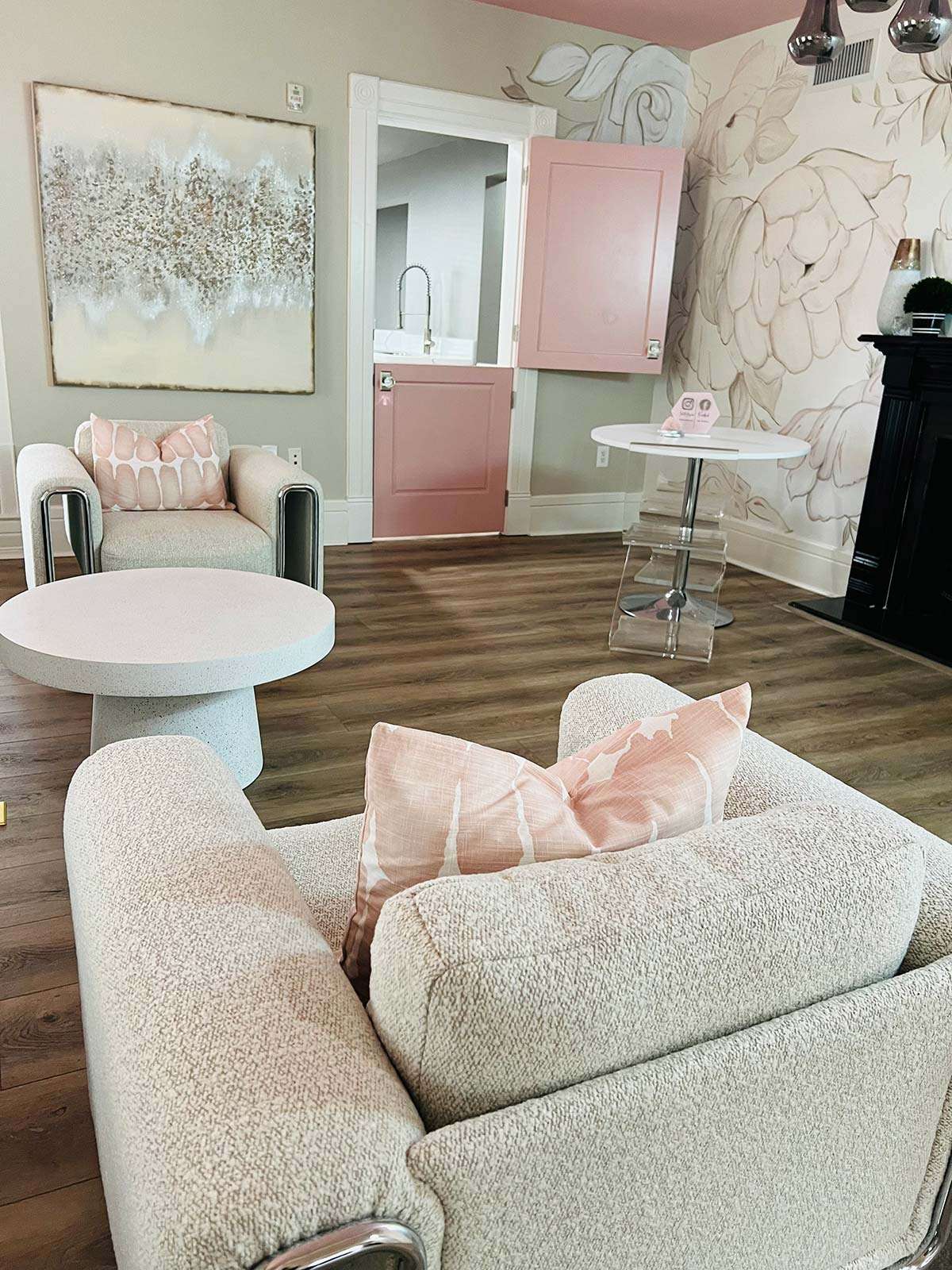 I have completed a few residential projects for her, but she needed a commercial design this time. Elite Wellness purchased a historic building in Beaumont that needed a facelift. The client had a clear vision of the branding, including rose gold, pink, and silver.