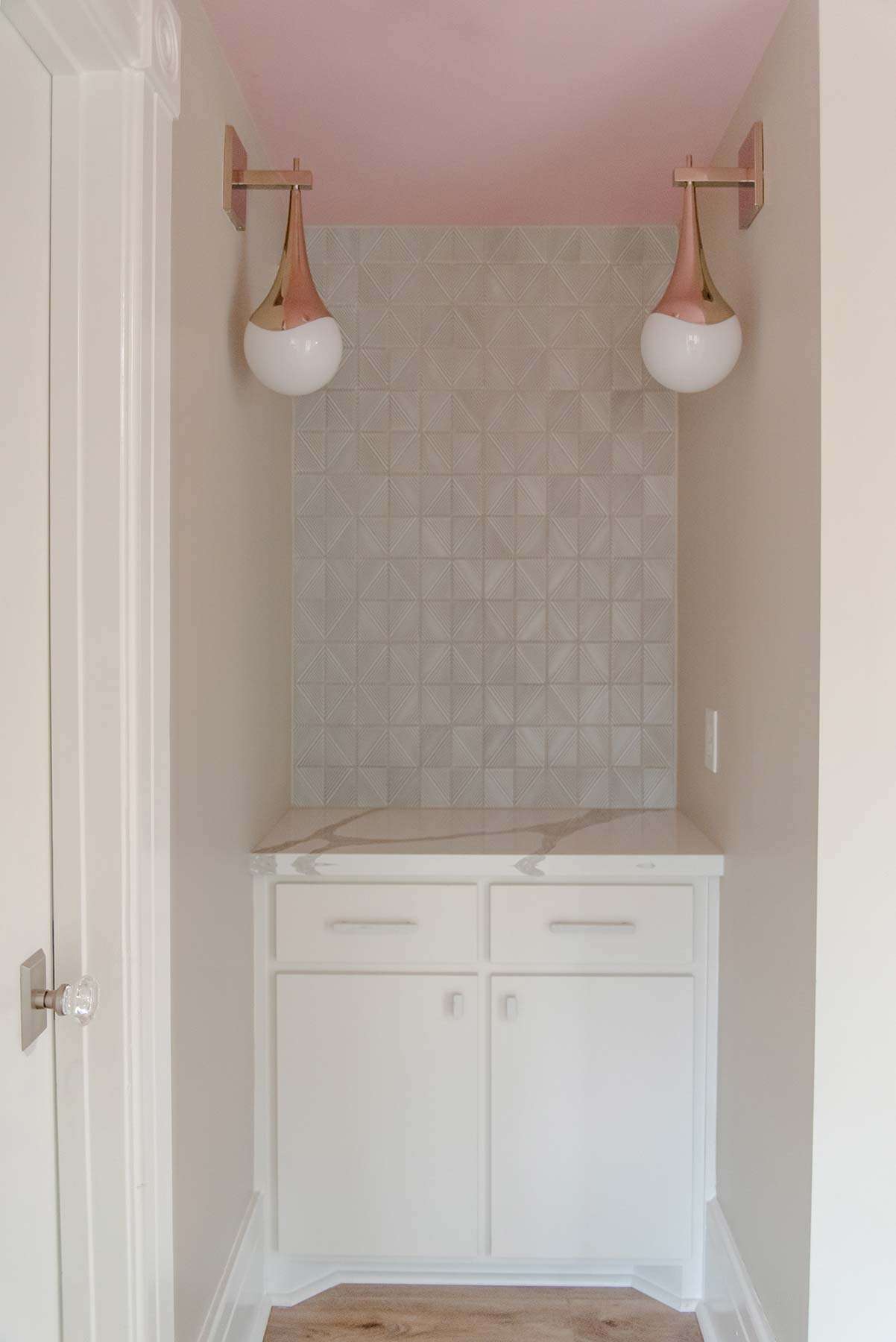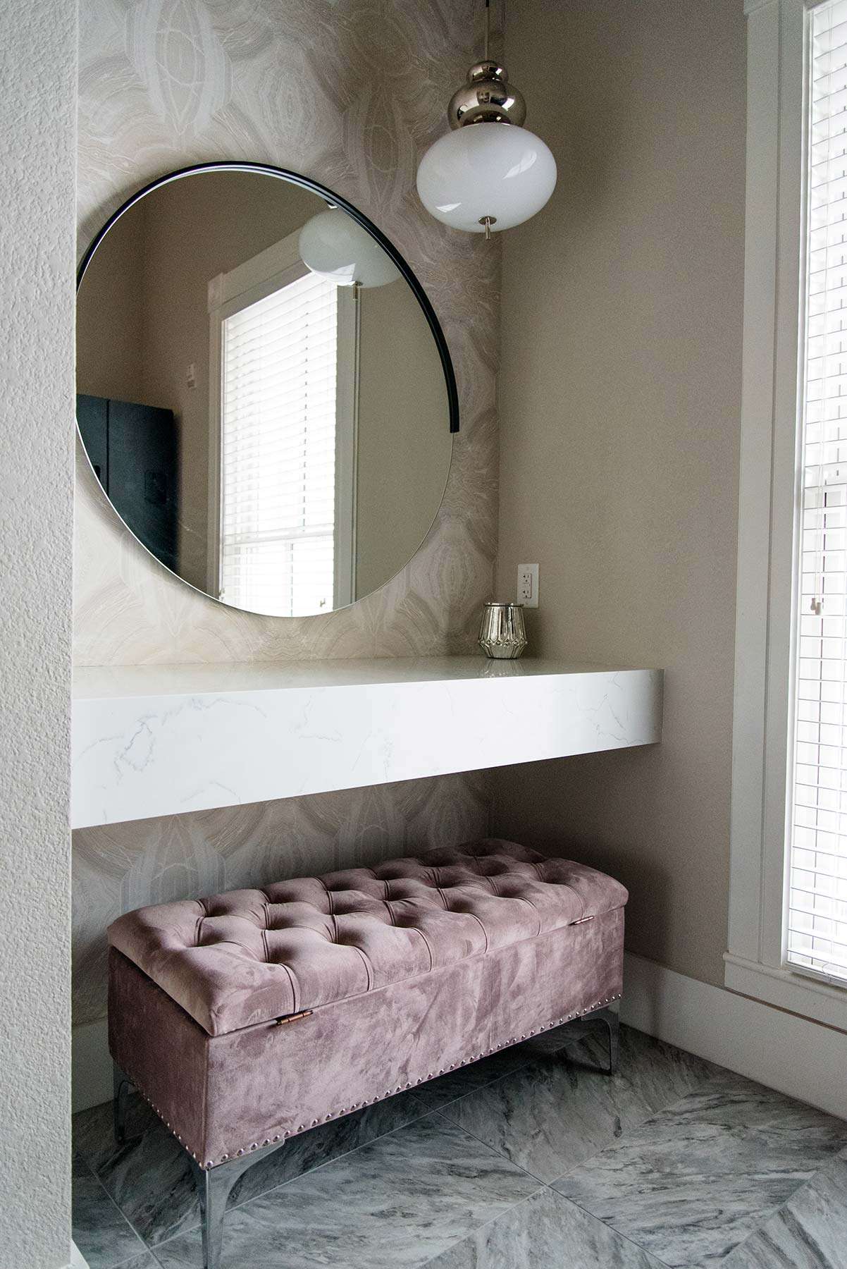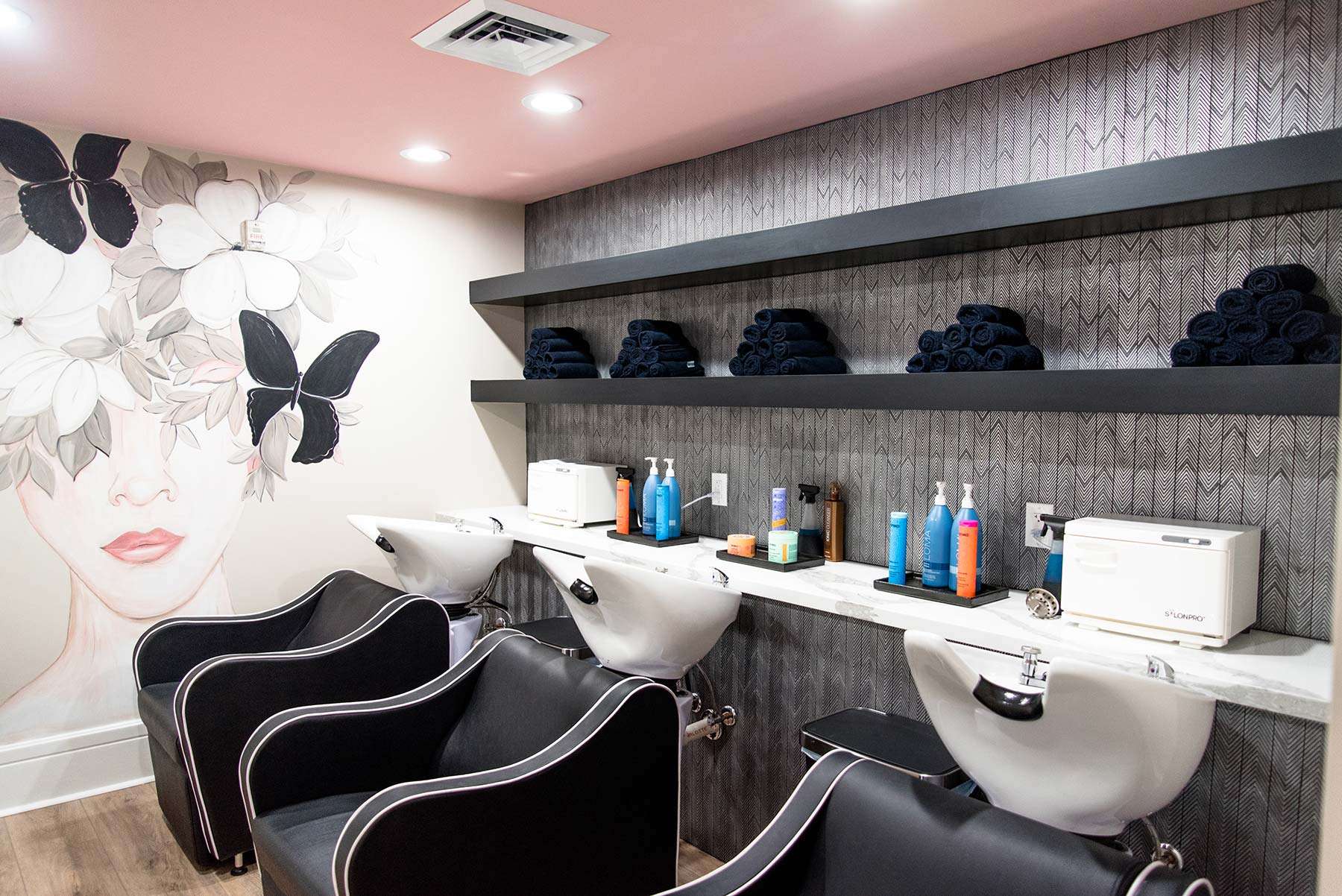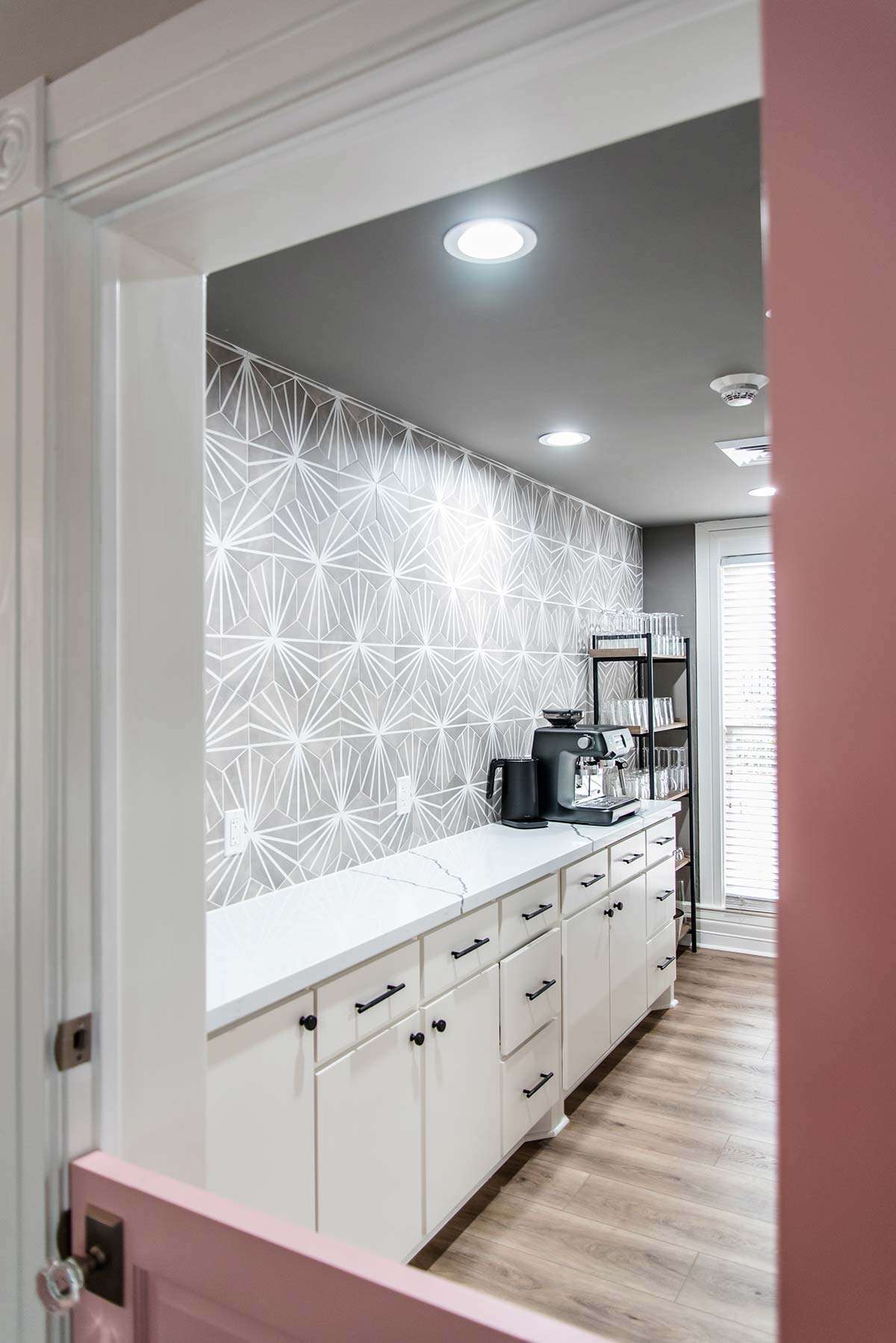 I have completed a few residential projects for her, but she needed a commercial design this time. Elite Wellness purchased a historic building in Beaumont that needed a facelift. The client had a clear vision of the branding, including rose gold, pink, and silver.
