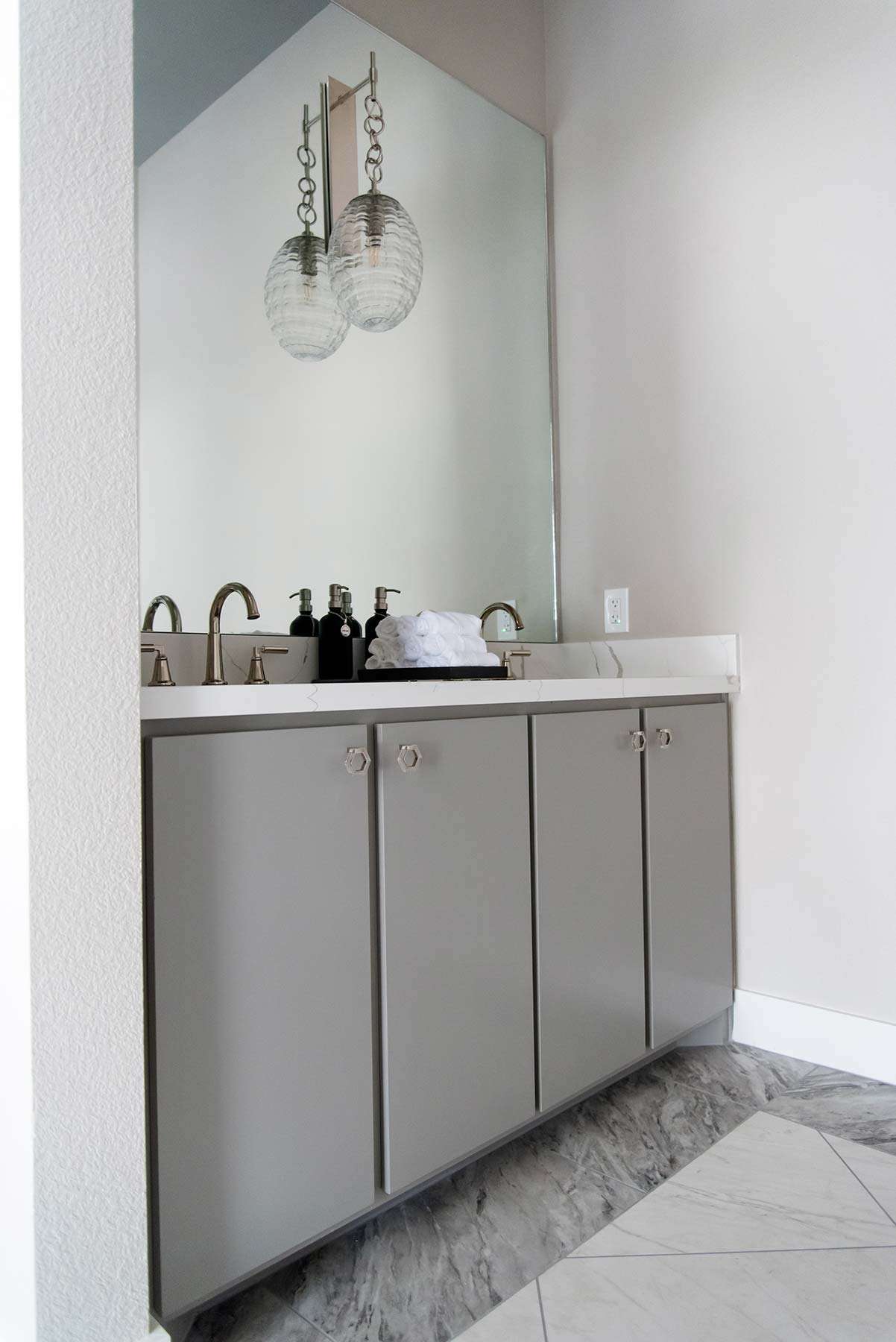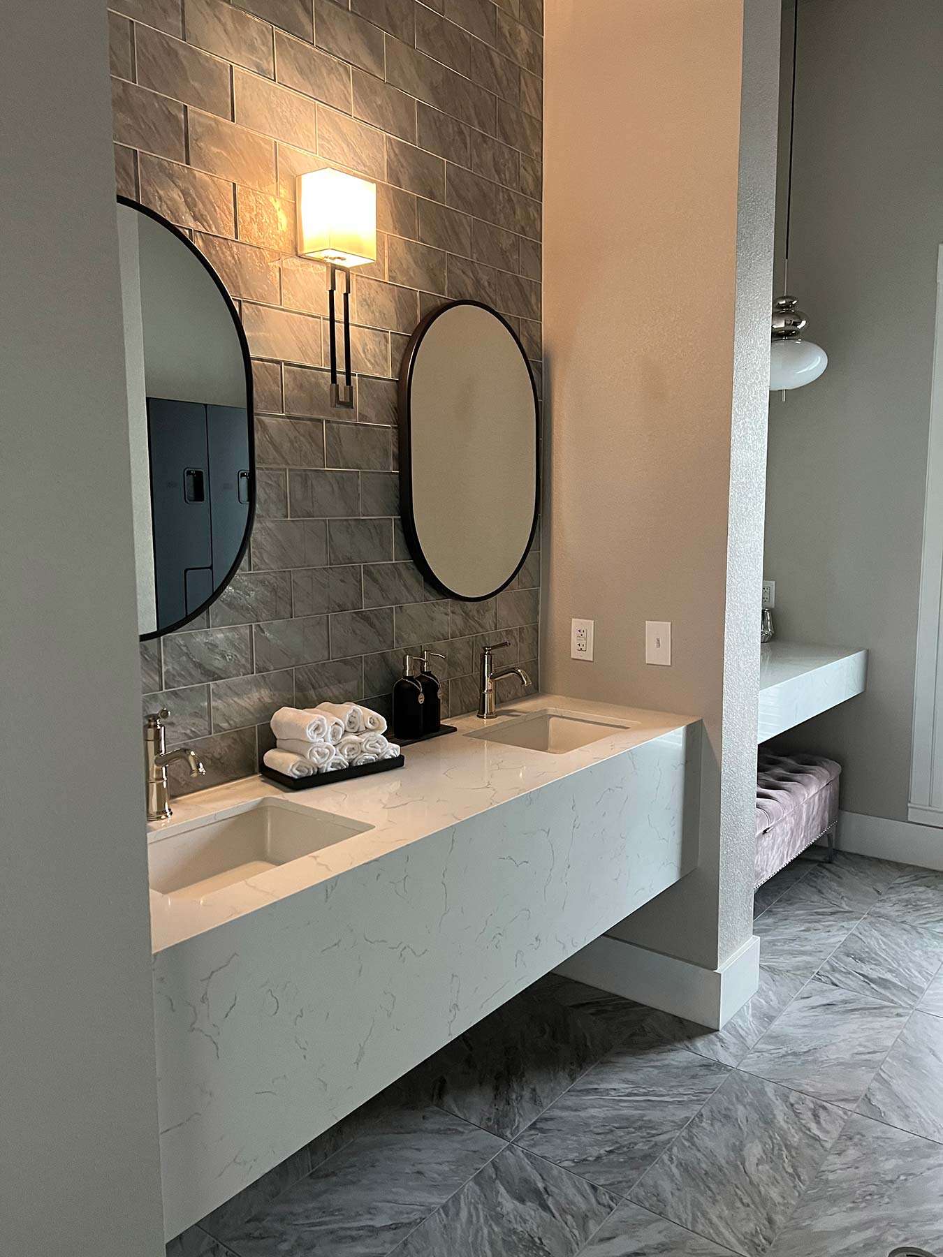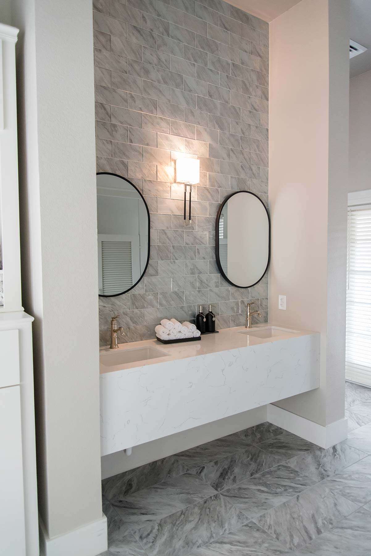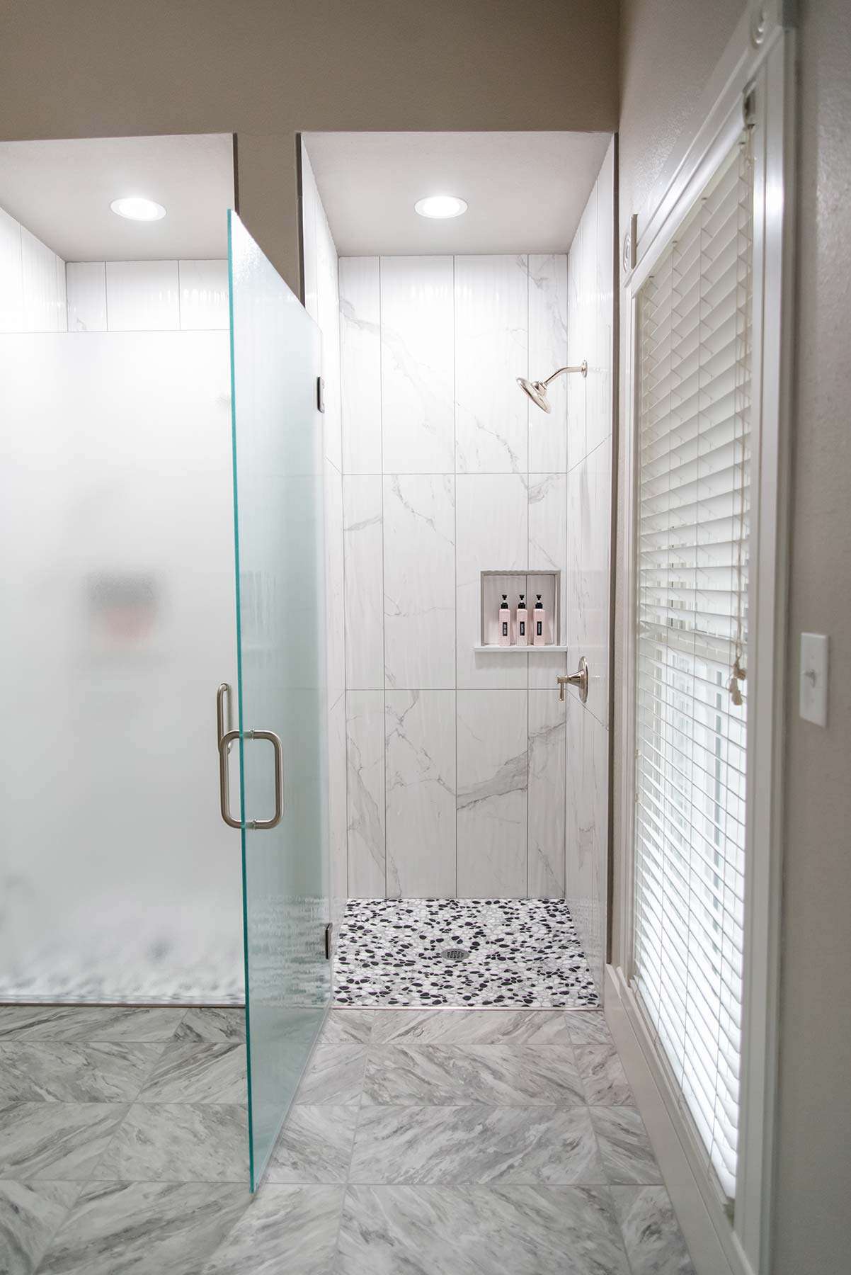 I have completed a few residential projects for her, but she needed a commercial design this time. Elite Wellness purchased a historic building in Beaumont that needed a facelift. The client had a clear vision of the branding, including rose gold, pink, and silver.