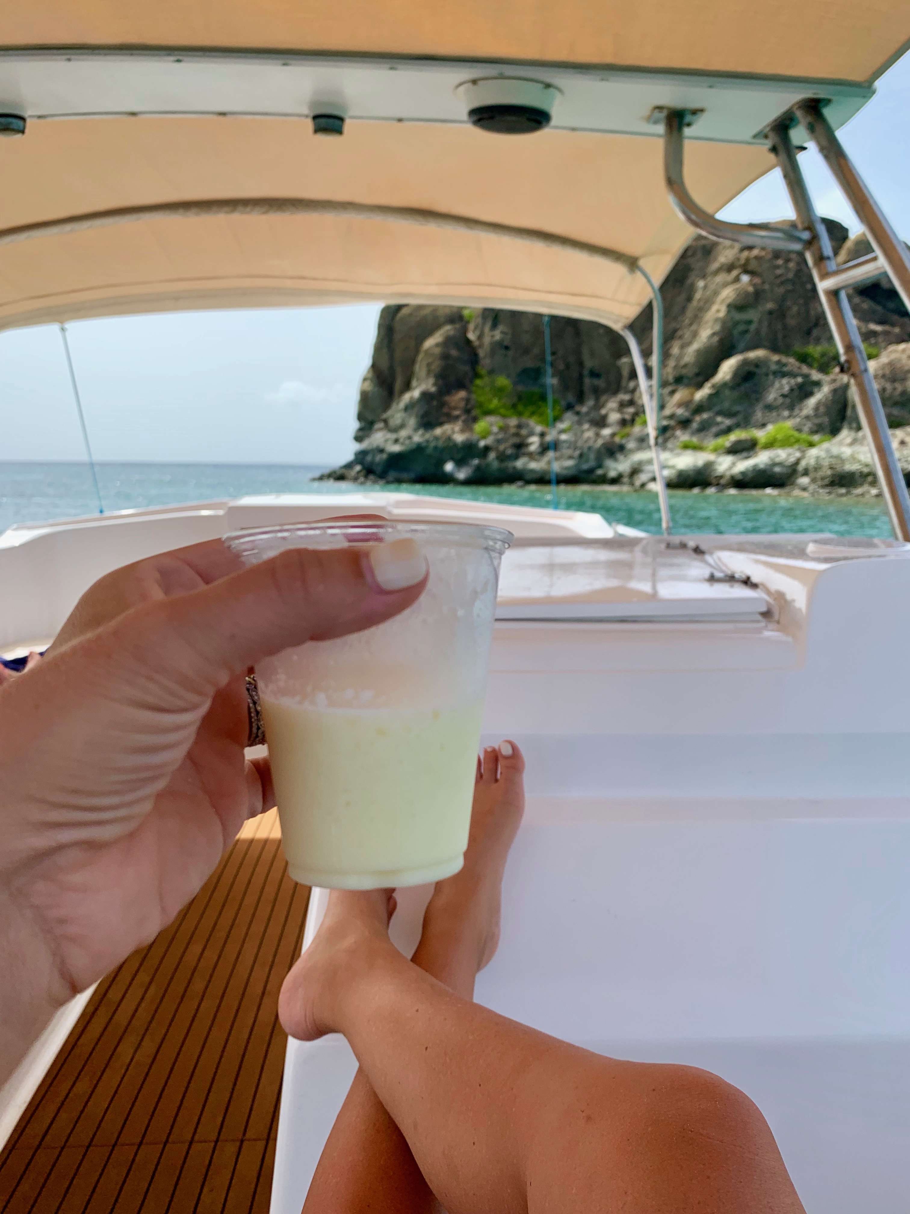 We opted for a private boat to customize our adventures. Captain Jo Charters was our choice; they had great prices and packages, but the service was even better! We enjoyed fresh Pina Coladas, rum punch, and more! More about this later. Going between the two islands is a quick 20-minute boat ride.