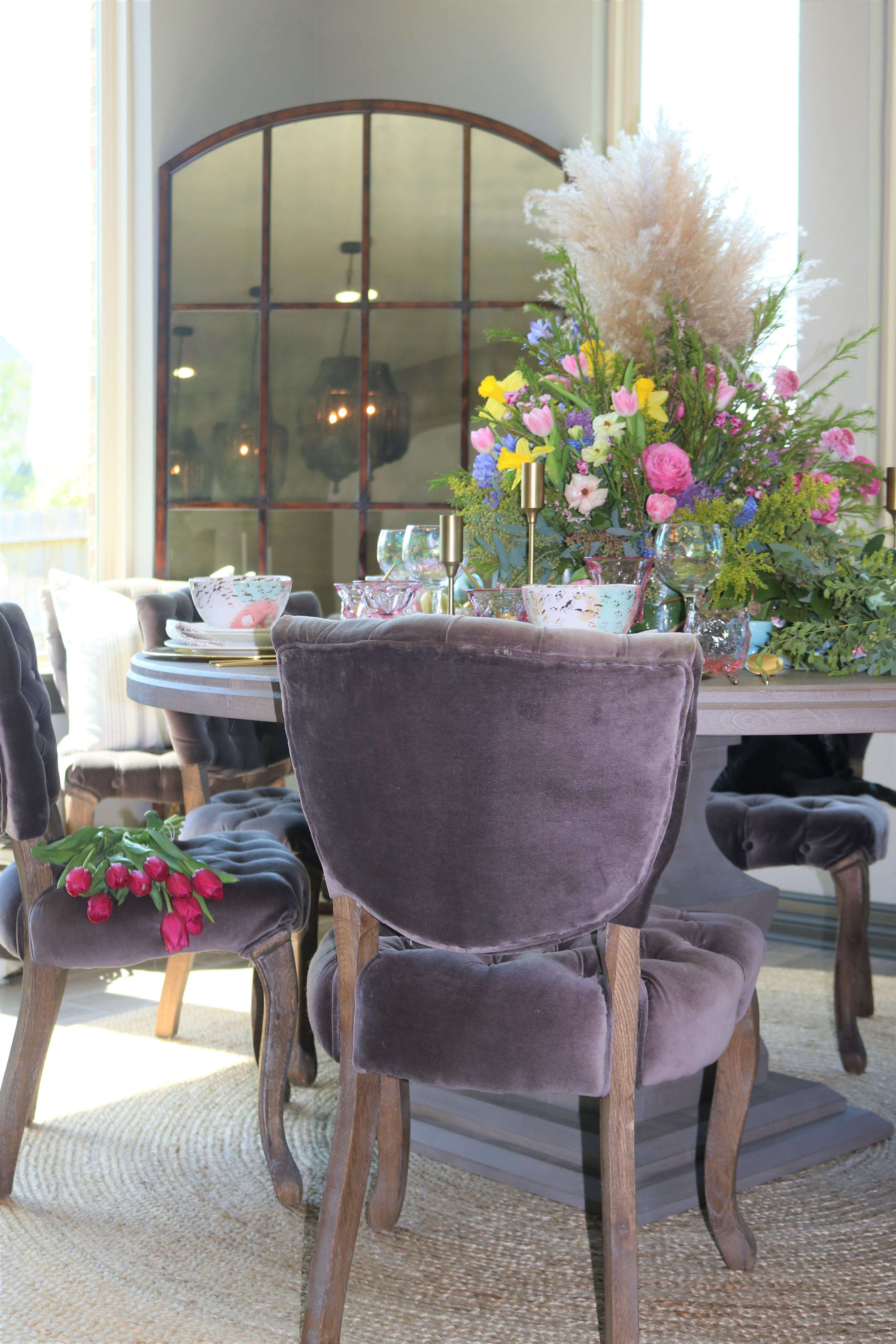 I created not one, but two Easter table settings. One is an extravagant & luxurious design for the “adult” dining table while the second table displays a playful, whimsical design for kids. Each table is stunning on its own with no detail spared. Both are complete with intricate pieces bring layers of depth to each tablescape. These tables will have you so inspired to create your own magical world for your Easter celebration! I am going to let the pictures do all the talking for me today!